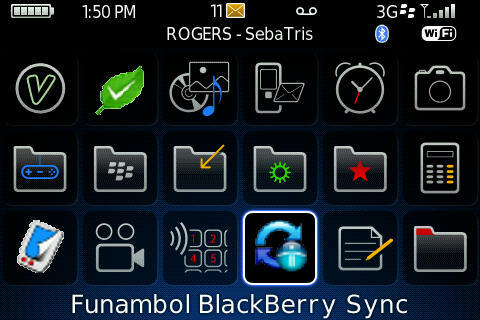 Once installed, you will see the Funambol BlackBerry sync icon in your list of applications on the BlackBerry screen (Figure 7).
