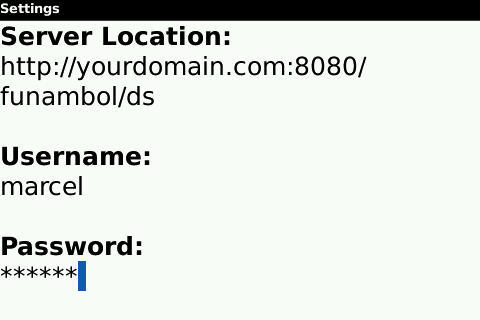 Figure 9. Funambol BlackBerry Client's Configuration Screen