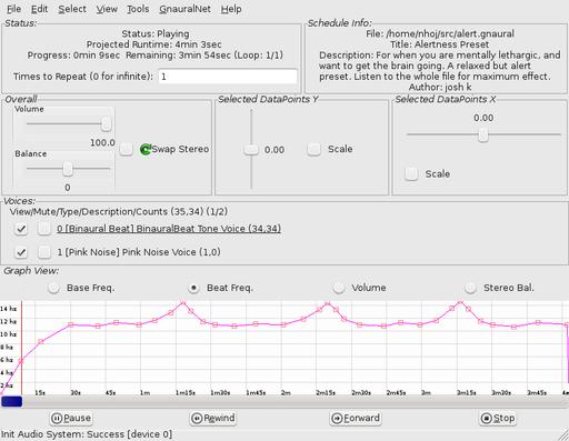Here's Gnaural being used to maintain alertness—very handy for studying.