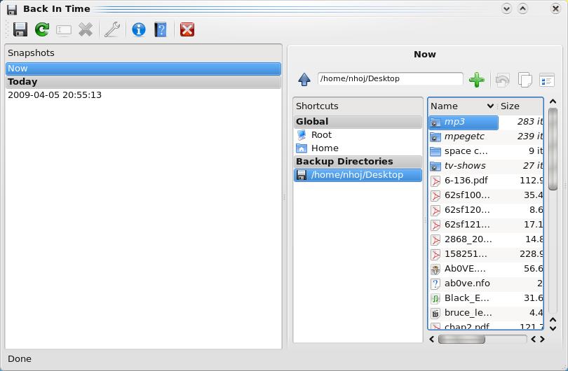 Back In Time is a simple backup system for Linux (GNOME and KDE4) inspired by the flyback project and TimeVault. The backup is done by taking snapshots of a specified set of directories. All you have to do is configure where to save the snapshot, what directories to back up, and when a backup should be done (manually, every hour, every day, every week or every month). It acts as a user-mode backup system. This means you can back up and restore only folders to which you have write access.