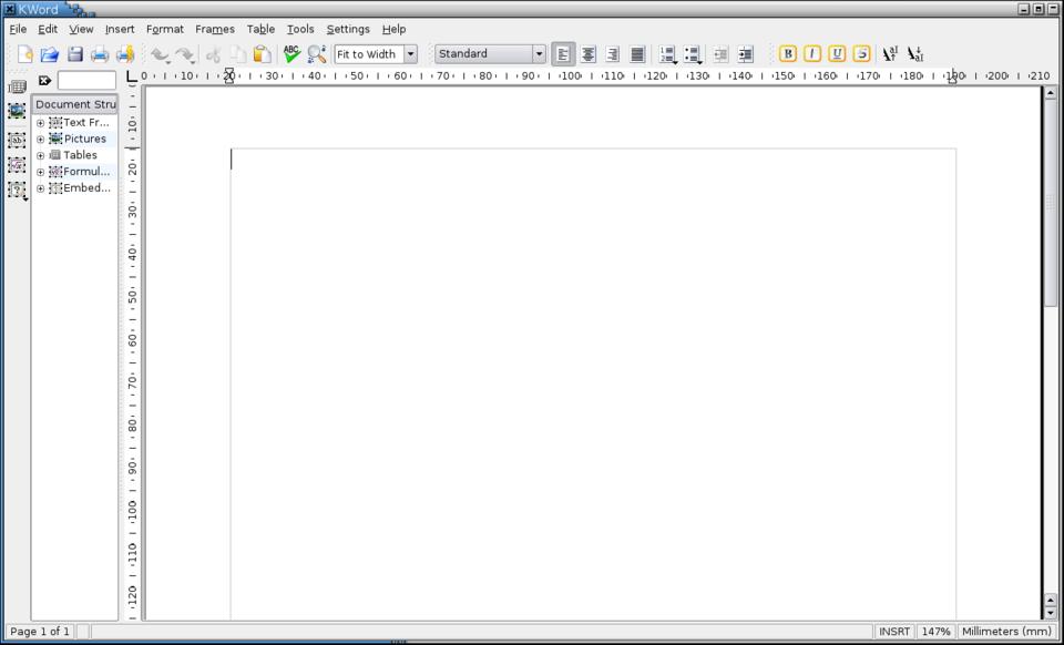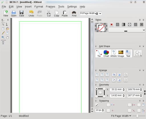 Another advantage of KOffice 2.0's interface is that basic concepts often become clearer. This change is especially obvious in KWord.
