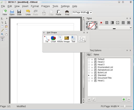 A second basic concept that becomes clearer in KOffice 2.0 is styles—the formatting equivalent of declaring a variable once and reusing it as needed. Most word processors have the concept of character and paragraph styles, but they vary widely in their emphasis on them. For instance, AbiWord and MS Office tend to make manual formatting more prominent, while OpenOffice.org requires the use of styles if you want to use many advanced features. In the past, KOffice has been closer to AbiWord than OpenOffice.org, including styles, but keeping them in the menus where they can be missed and their features buried several layers below the top menu.