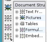 In 1.6.3, the latest officially released version, KWord's frame tools provided a tree view of document structure rather like the OpenOffice.org Navigator. However, this view was locked in place and too narrow by default even when KWord was maximized. Nor were the arcane icons for different types of objects beside the tree view very helpful to users. As a result, most users I have talked to ignore them. Many confess to hiding the tree view to avoid being intimidated by them.