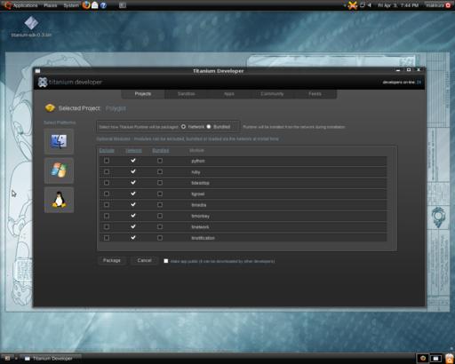Titanium Developer is the main tool you need for developing Titanium applications. It features several tabs for different purposes, ranging from packaging your app, managing projects and discovering cool stuff from other developers (Figure 1).