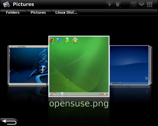Figure 1. Elisa, Fluendo's media center application, utilizes Clutter's advanced library to add 3-D animation to its GUI.