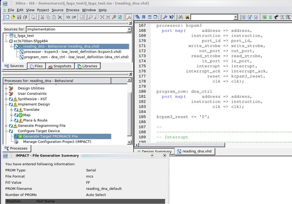 ISE has a graphical installer where you must accept the software license and enter the key you got after a free registration on the Xilinx Web site. After it's finished, you'll find a script called settings32.sh or settings64.sh in the installation directory—that's the one you have to source to add the Xilinx software to your path. After this, type ise at the prompt to launch the Project Navigator (Figure 1). This is a front end to a bunch of specialized programs, one for each design phase. You also can run most of these back-end utilities from the command line. The Navigator includes a Tcl prompt and, if you select Project→Generate Tcl Script, it will save all the commands you entered through the GUI as a Tcl script.