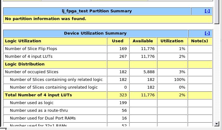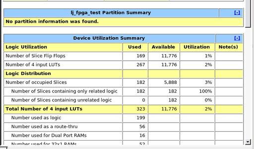 The procedure to transform this really simple HDL model into properly connected gates on silicon is equally simple. Double-click, one at a time, the icons in the left-center pane of the Project Navigator shown in Figure 1: synthesize, Implement Design, Generate Programming File and Configure Target Device. If you clicked directly on the last one, ISE would do all the previous steps in the right order anyway, but doing it in steps is a better way to learn. Eventually, you'll get the bit file and a final report like the one shown in Figure 8, showing how much silicon was used. Remember, what we just did is actual hardware—that is, transistors directly connected to do, in real time, what we ordered them to do. All that remains to make it actually happen is to load the bit file in the FPGA. Figure 9 shows the result.