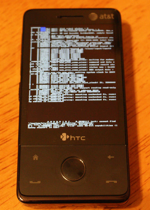 As getting control of a G1 was relatively easy, I started wondering about installing Android on other devices. A quick scan of my desk revealed an unused AT&T Fuze cell phone, otherwise known as the HTC Touch Pro (code-named Raphael100). The HTC Touch runs Windows Mobile, not Android, but the units are both made by HTC and seemed to have similar hardware. I began to wonder if it would be possible to run Android on that phone, because they had the same manufacturer.