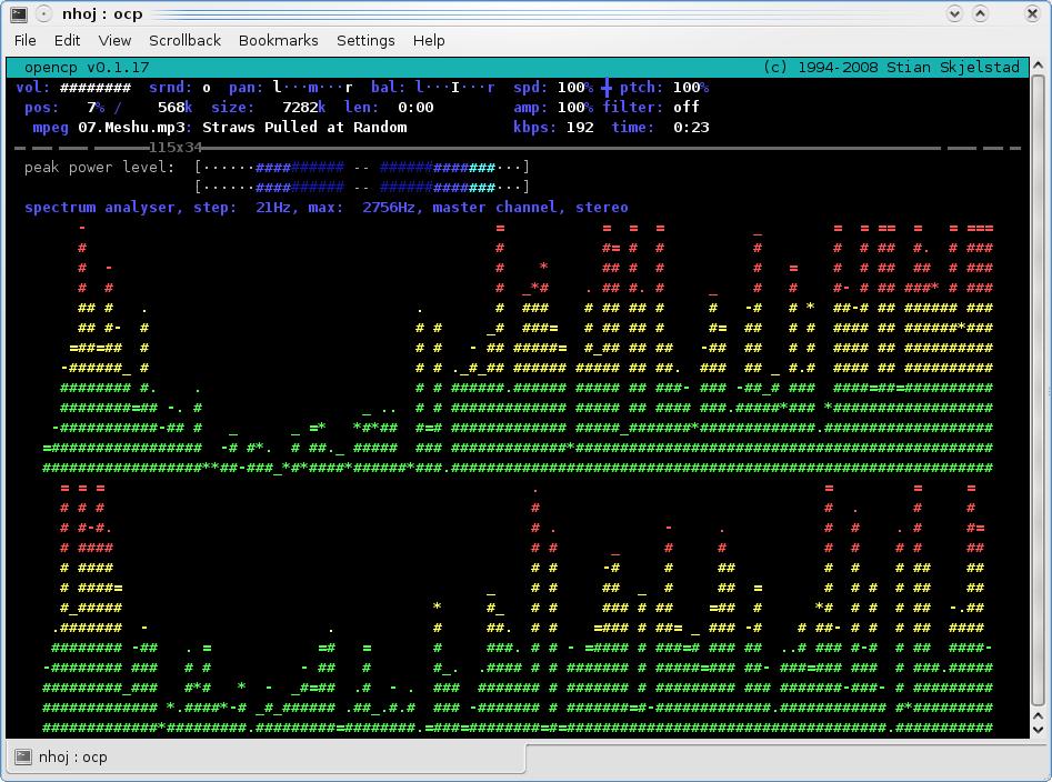 Open Cubic Player (OCP) is a text-based audio player that runs in various incarnations on Linux and Windows, and there's even an older DOS version. First appearing in late 1994, the original program was a binary-only freeware version called Cubic Player (running primarily in DOS). It had a reputation for being one of the best module players around, as it supported a great deal of soundcards as well as audio formats. As Windows grew more popular and people demanded GUI-based software, popularity and support for the program died off, as did the project itself.