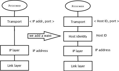 Figure 1. The Host Identity layer is located between the transport and network layers.