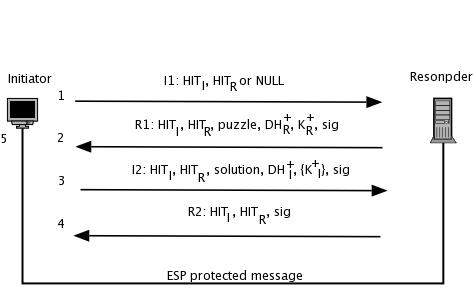 The actual Host Identity Protocol (HIP) is composed of a two round-trip, end-to-end Diffie-Hellman key-exchange protocol, called base exchange, mobility updates and some additional messages. The networking stack triggers the base exchange automatically when an application tries to connect to an HIT.