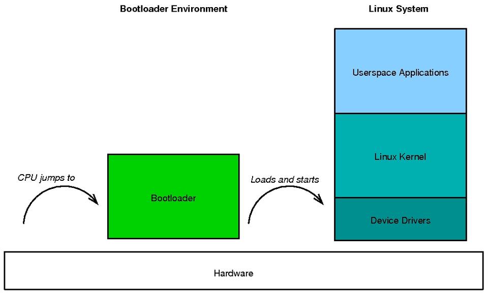 The very first step in starting an embedded Linux system does not involve Linux at all. Instead, the processor is reset and starts executing code from a given location. This location contains a bootloader that initializes the device and sets up the basic necessities. When everything has been prepared, the Linux kernel is loaded and started. The kernel then initializes all the devices before mounting the filesystems and starting the userspace applications.