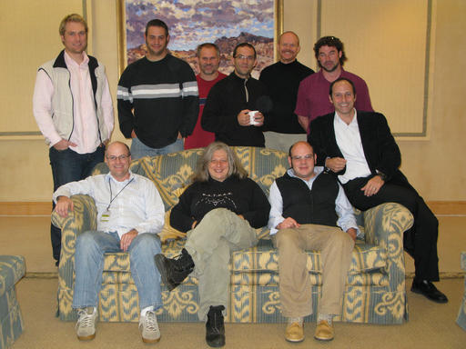 Figure 2. Village Telco Workshop 2008. Top from left to right: Jason Hudson, Jeff Fletcher, Johann Hugo, Alberto Escudero-Pascual, Steve Song, Jeff Wishnie and Alan Levin. Bottom: David Rowe, Elektra, Rael Lissoos.