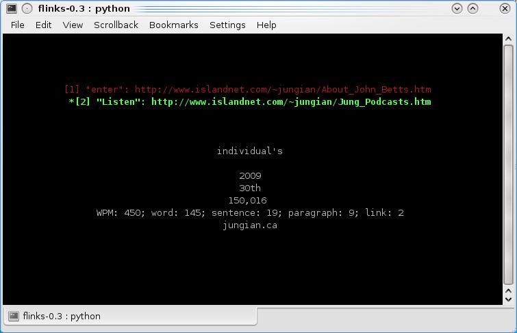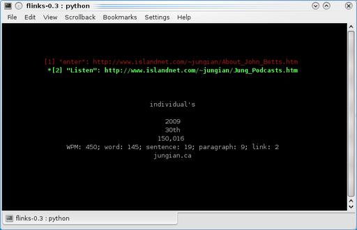 I'm always on the lookout for original projects, and this particular application really took me by surprise. According to its Web site, “Flinks is a text-mode flashing word Web browser. It is intended for speed reading and/or skimming Web pages and text.”