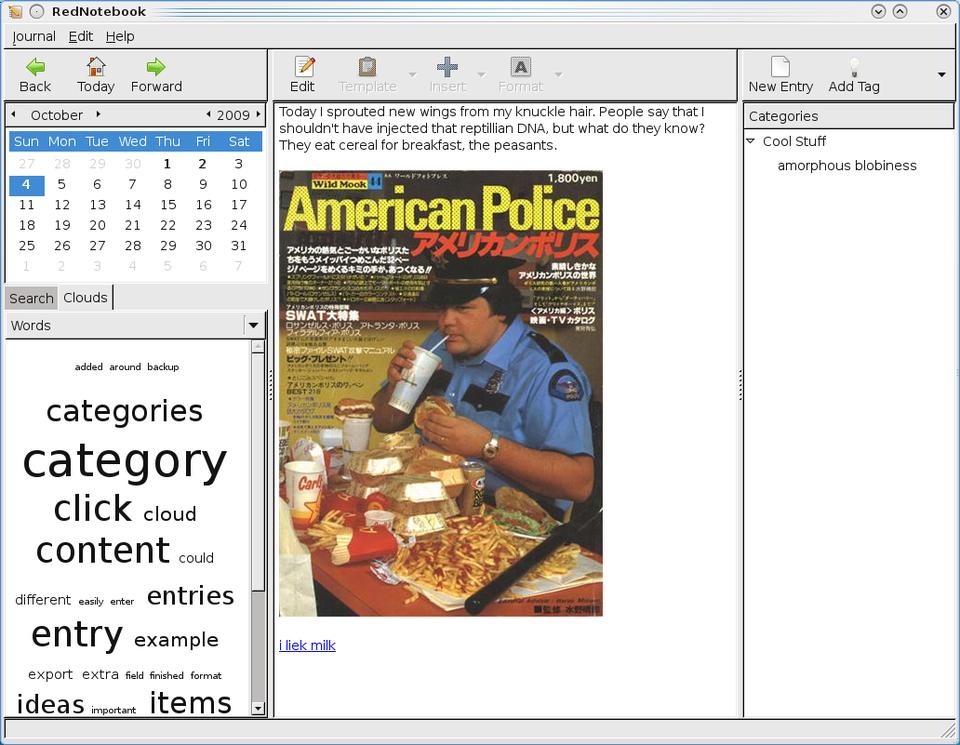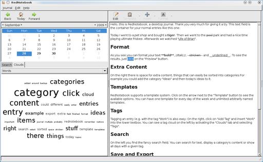 RedNotebook lets you keep a daily journal with organizational categories, multimedia attachments and more.
