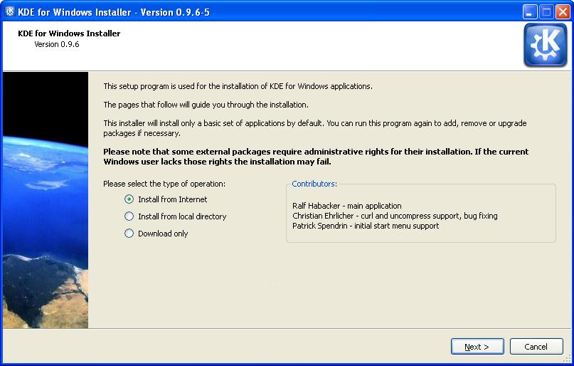 The main KDE 4 distribution for Linux is split into large modules—for example, Marble, a desktop globe application, is part of the KDE Education module with many other applications for subjects ranging from chemistry to astronomy. This works fine on Linux, where most of what you need is installed with your chosen distribution. But, if you're on Windows and want a desktop globe but have no interest in chemistry or physics, there are clear benefits in preserving your download bandwidth and hard-drive space by not downloading everything else. Patrick Spendrin, a member of both the KDE on Windows and Marble projects, says they recognize this issue: “as one can see, we are already working on splitting up packages into smaller parts, so that each application can be installed separately.” Many modules already have been split, so you can install the photo management application digiKam, individual games and key parts of the KDE software development kit separately from their companion applications. The productivity suite KOffice will be split up in a similar way in the near future, and Patrick hopes that the Education module will follow shortly afterward.