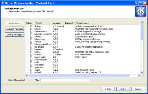 Overall, the installation process will feel familiar and easy if you've used Linux in the past. However, if you have used only Windows, the process of using a single installer to install whatever applications you want may seem a little strange. After all, most applications for Windows are installed by downloading a single self-contained executable file that installs the application and everything it needs to run in one go. The KDE on Windows installation process reflects the fact that KDE applications share a lot of code in common libraries.