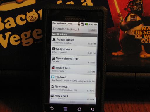 Regarding third-party applications, the Android apps store has convinced me that more isn't always better. After many hours browsing the store, it appears as though there is enough variety to cover just about everything you'd want to do with your phone (and probably a few things you wouldn't). For me, I've had no trouble finding applications for most of the things I've wanted to do. The one shortcoming is the availability of applications for certain popular Web services. This is beginning to change, however, even in the short time that DROID has been on the market.