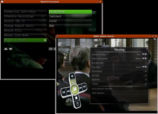 Both systems support the VDPAU extensions for NVIDIA, which provides high-quality playback. Because both support OpenGL, they also provide video controls, such as brightness, contrast and color controls (Figure 14). The actual features available under MythTV depend on various configuration options for both video and TV features. XBMC always has the same options available from any video playback, be it video files or live TV. These controls were available for an NVIDIA-based display. Other video hardware may present different options.