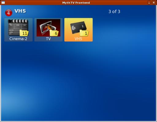 MythTV provides three methods for video collection browsing. The first is Browse mode, and it allows you to browse the entire collection front to back. The page up and down keys make jumping through the list easy enough, although this method doesn't remember your last location. The second method is List mode, and it uses a tree listing to display entries. This listing benefits from a well structured hierarchy under the top-level video directory. Gallery mode is the last mode, and it uses icons for folders and movie posters for individual entries. This is visually appealing and also benefits from a well structured hierarchy for the video collection, although the number of entries in each folder displayed over the icons is rather distracting (Figure 7).