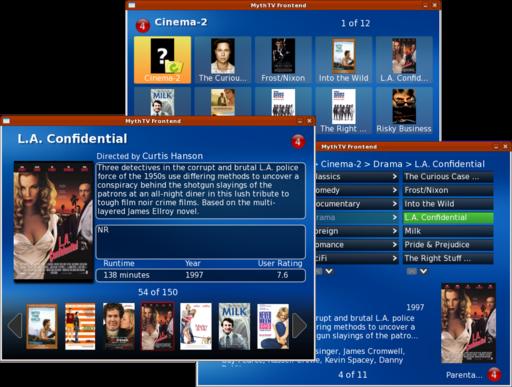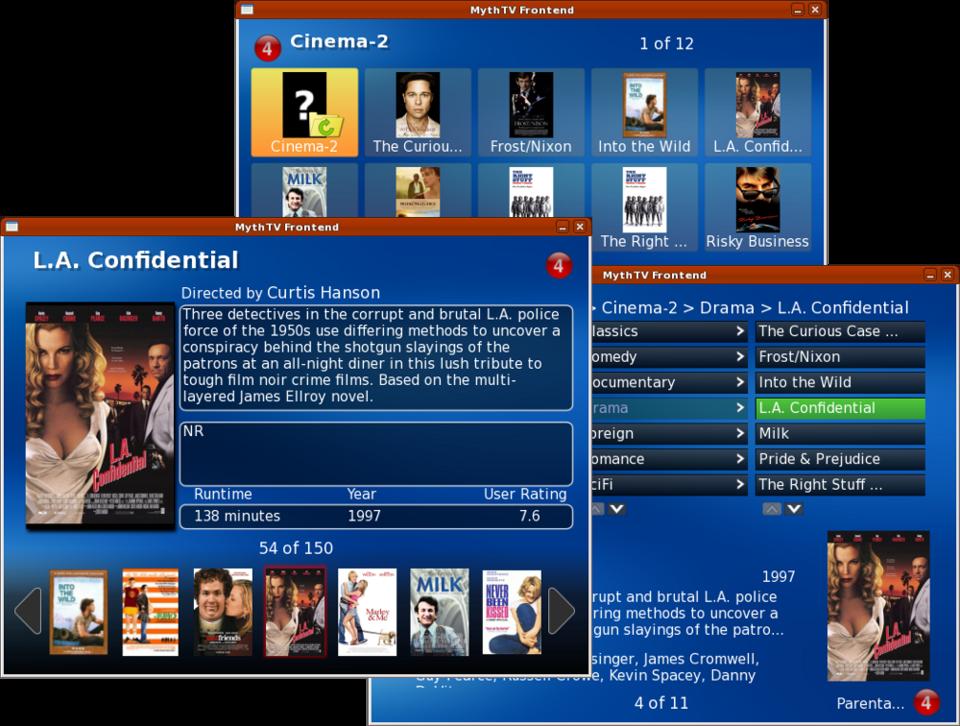 MythTV is designed as a personal video recorder (PVR) application. It is a network-based system with back ends used to acquire and serve TV and other media to front ends that handle display and playback. It supports a wide variety of hardware for both analog and video capture (Figure 3). The core recording and playback system is extended with plugins that provide additional features. The MythVideo plugin handles management and playback of video files, such as DVD rips. MythTV is best known for its wide support of TV tuner hardware and ability to play and record both analog and digital TV.