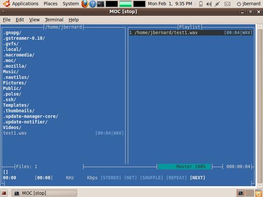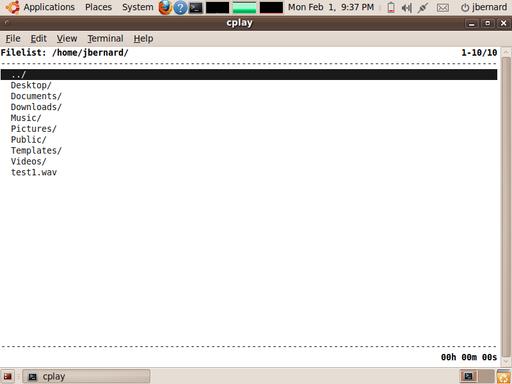 What if you want to listen to a whole list of audio files? Several choices are available for handling entire playlists from the command line, such as cplay and moc. Both programs give you a file list on startup, and from there, you can play individual files or construct playlists. Both programs use shortcut keys to create, edit and otherwise manage your playlists.