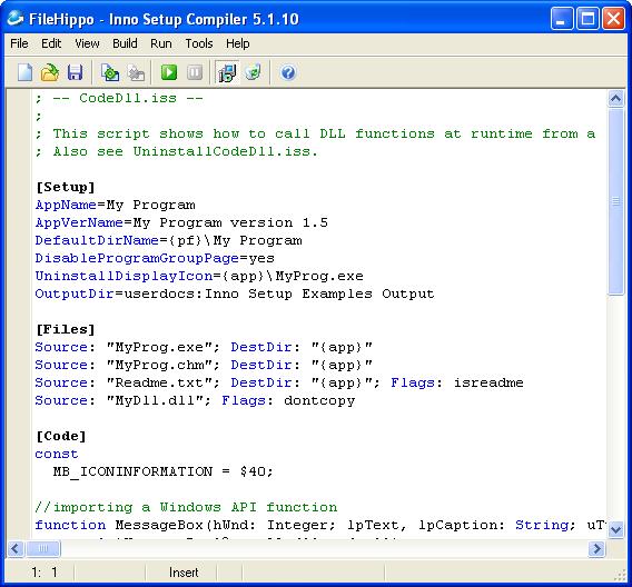 Inno Setup is a free and open-source installer for Windows programs. It's been around since 1997 and is written in Delphi Pascal. Inno Setup is driven by a script that you provide, allowing Inno Setup to create an installer for your program. The script is much like an INI file. You provide simple name/value pairs that drive the creation of the installer. For more complex scenarios, Inno Setup contains its own built-in Pascal compiler for creating real “code” sections in the script.