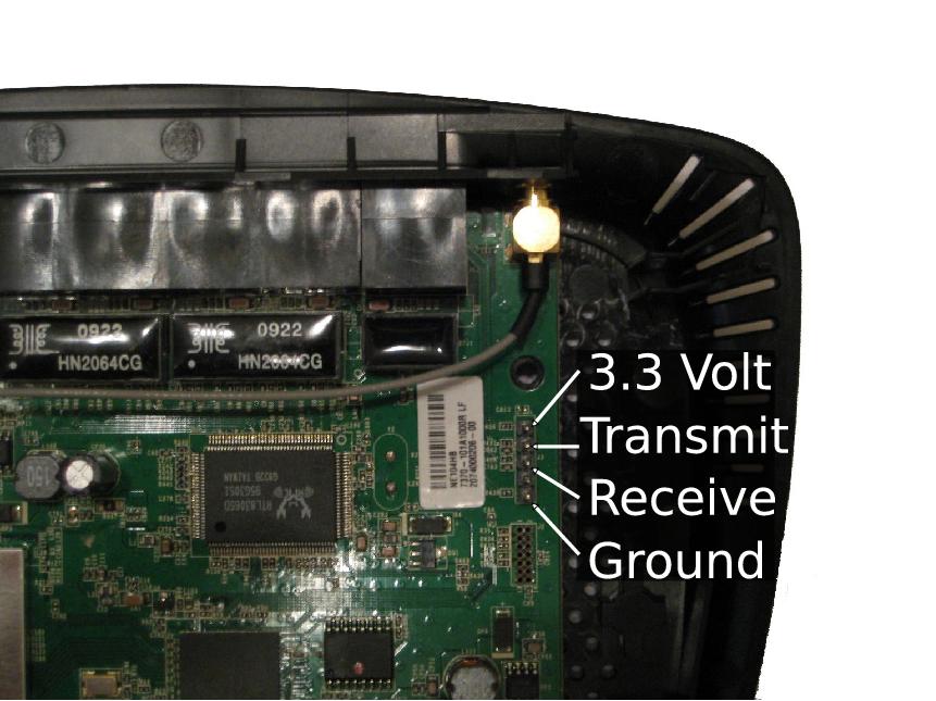 Connect the USB connector of the console cable to your build workstation. Install a serial terminal emulator, such as minicom, on your build workstation and run the program. Configure the emulator to use eight data bits, no parity bit and one stop bit. Select 115200 baud. Boot the router and observe the emulator console. You should see the router print diagnostic information through the console interface. Pay close attention to the messages being printed through the console, and press a key when the U-Boot bootloader prompts you to “Hit any key to stop autoboot.” You should see the U-Boot command prompt, ar7100>. Enter the command upgrade code.bin to instruct U-Boot to initiate a tftp server. Return to the build workstation command line, enter the command tftp 192.168.1.1, and then: