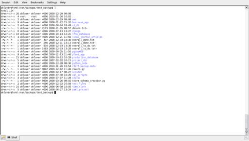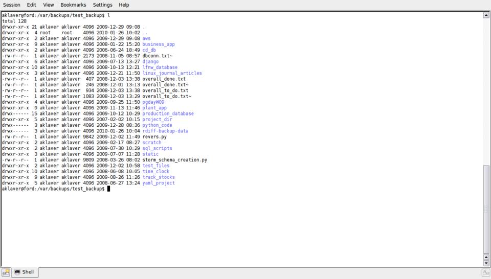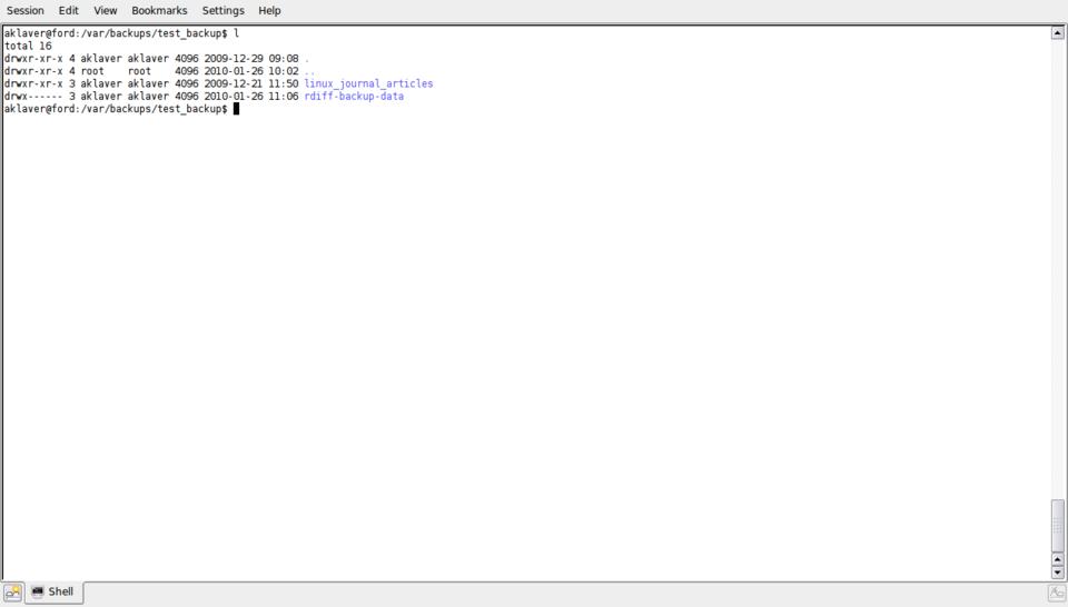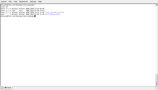 Figure 3. Directory listing for backup where only the linux_journal_articles directory is included.