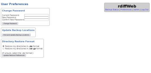 Figure 4. User Preferences Page in rdiffWeb Setup