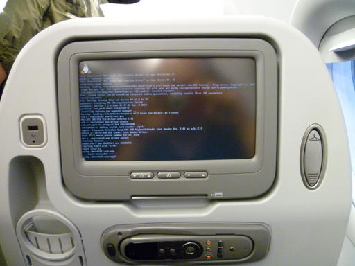Here is a picture of the entertainment system booting Linux in an Airbus A320. Submitted by Ariel Martinez.