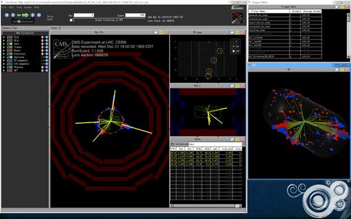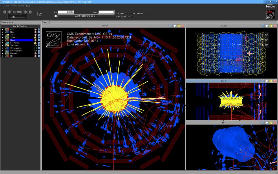 Figure 3 shows a simulated event seen through CMS, and Figure 4 shows an actual record event.