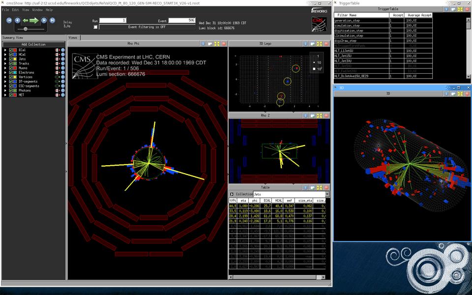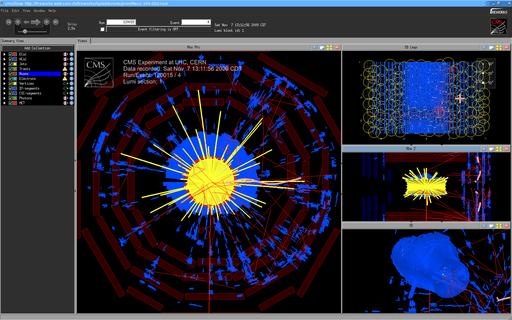 Figure 3. How a physicist sees CMS—this is the event display of a single simulated event.