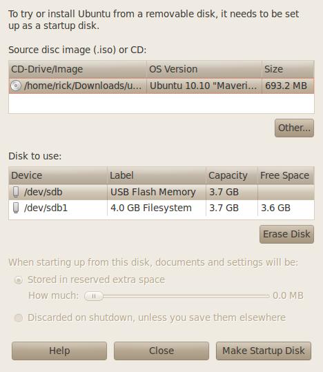 So, why not just run a desktop distro from a USB stick? That, in fact, was my first solution, and most desktop distros make it really easy to create a live USB installation, including persistence to storage on the USB drive. For example, Ubuntu 10.10 (and every Ubuntu release since 9.04) comes with the usb-creator tool that creates a live USB installation for you given the related .iso file.