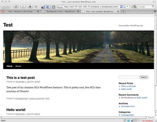 The preconfigured software is pretty good as well. In this case, when I provisioned the instance, I selected the WordPress option, and I was pleasantly surprised to see WordPress ready to go. All I had to do was click the URL presented by the Web page once the instance was ready and answer a few WordPress-specific questions like “What do you want the site name to be?” and “What's the admin password for your WordPress site?” I literally had posted my first blog post to the instance within a couple minutes of it being live.
