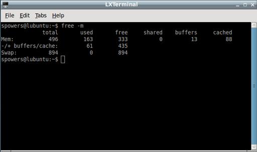 Although a similar blue to Xubuntu, Lubuntu's screen layout is visually different. Figure 3 shows Lubuntu's simple single taskbar layout, which is quite similar to the design Microsoft has been trying to perfect since the days of Windows 95. That's not a bad thing. As a group we may not care for Microsoft, but its start-menu-type system is widely known and very usable. The first thing I did upon booting Lubuntu was open a terminal and check the memory usage. You can see in Figure 4 that Lubuntu is using only 163MB of RAM when fully booted. That's almost exactly half the RAM Xubuntu and Ubuntu use when freshly booted. When you add to that the selection of fast and small applications Lubuntu uses by default, including the Chromium Web browser, it really does scream even on low-end or old computers. If you've been frustrated with your computer's poor performance with either GNOME under Ubuntu or XFCE under Xubuntu, you may want to give Lubuntu a try. It uses the same repositories, and it has remarkable compatibility with more well-known, if not bulkier, applications.