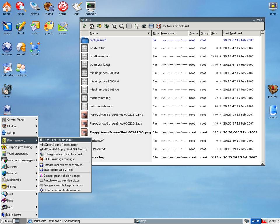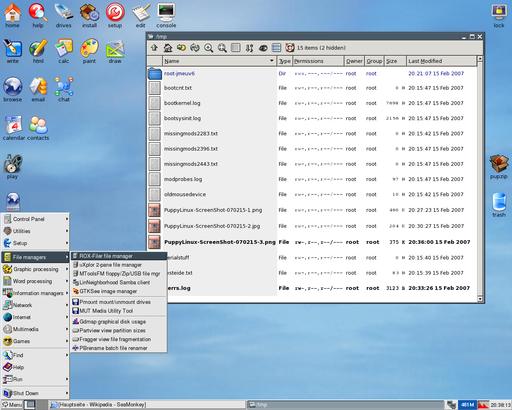 There are more to the alternatives than just speed. I used the Ubuntu example above to demonstrate how alternatives to the “Big 2” can give you advantages in speed, but there are other reasons to veer from the norm as well. The ROX Desktop, for example, is a complete desktop environment designed around a file manager—the ROX-Filer, to be specific. Although the ROX Desktop is certainly light on system resource needs, its design and integration with the filesystem is what really makes it unique. Figure 5 shows a screenshot of Puppy Linux, which uses ROX-Filer as the file manager.