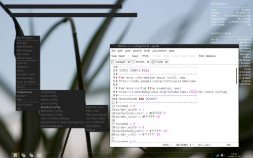 A multitude of Linux distributions have only a window manager to manipulate the desktop. Blackbox, Fluxbox and Openbox are all related window managers. Fluxbox is a fork of Blackbox, and although Openbox is all original code now, it started as a fork of Blackbox as well. These three window managers are lightning fast. They may not offer the same level of features and complexity that Enlightenment or IceWM do, but for many minimalistic distributions, they are just perfect. CrunchBang Linux is a prime example of a full-featured, yet minimalistic distribution. It uses Openbox as its window manager, and as you can see in Figure 7, the windowing environment is designed to get out of the user's way.