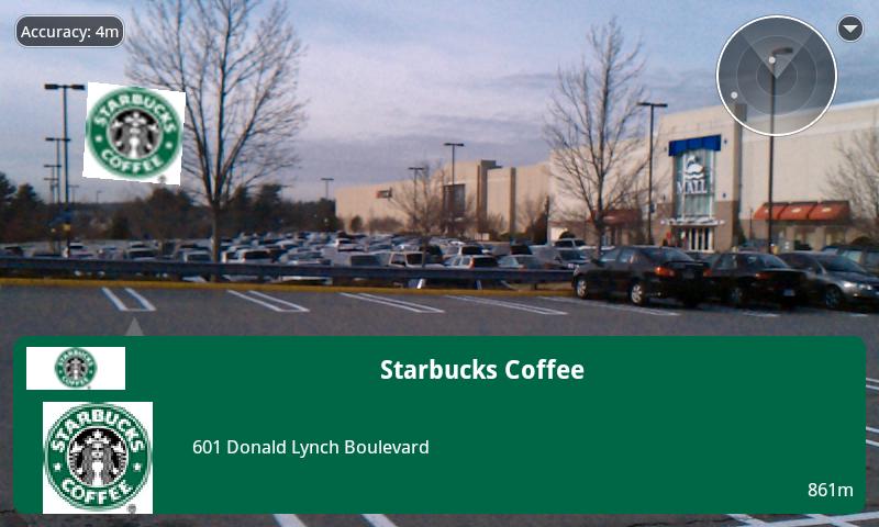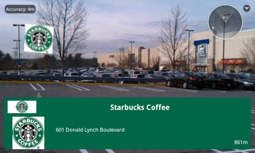 Augmented reality (AR) is the name given to a class of applications that combines the unique capabilities of mobile phones to extend users' perceptions of their environments. Layar (www.layar.com) was one of the first AR applications, and it's still one of the more creative. Augmented reality overlays the current camera preview screen with additional information—you can see examples in this YouTube video: (www.youtube.com/watch?v=A6Le50-QN3o&feature=player_embedded). Figure 1 shows what Layar looks like when the “Starbucks” layer is loaded and the camera is pointed at a mall where there is a Starbucks coffee shop.