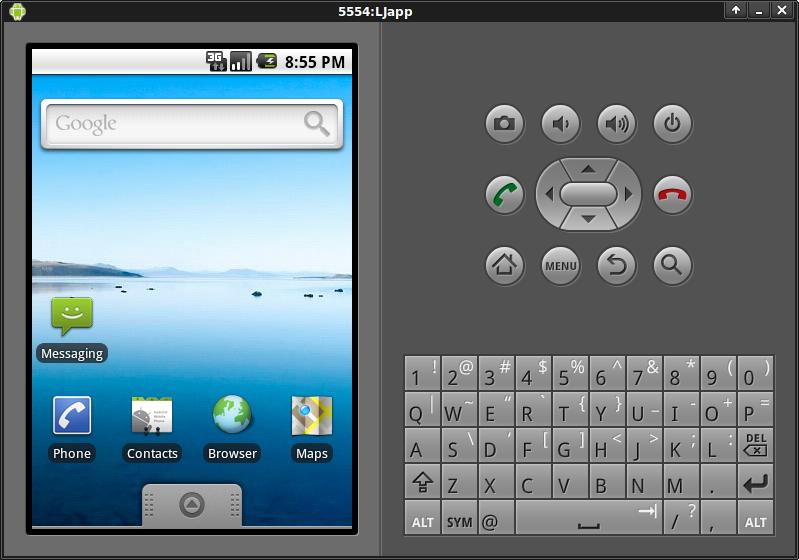 If you return to the Virtual Devices tab, your LJapp AVD now should exist. Select the AVD and press the Start button, then select the Launch button from the displayed dialog. The emulator starts to load, and after a few seconds, you see the opening screen for your emulated Android device (Figure 2). Note that the emulator runs much more slowly than the actual physical phone, so it may take a while to get to the Android startup screen. Your mileage will vary, depending on the speed of your desktop's processor.