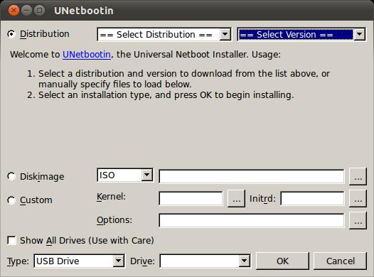 UNetbootin can download the correct ISO image for all of these distributions automatically, or you can download (or create) your own ISO image and hand the filename to UNetbootin. In either case, the next step is to extract all of the files from the image so they can be copied to the USB drive. The USB drive you want to use needs to be formatted with a filesystem already on it. Once the files all have been extracted, UNetbootin uses some heuristics to figure out where the kernel and initrd files are hiding and places them into /ubnkern and /ubninit. It then goes through the boot configuration files from the ISO to try to figure out what boot options need to be set on the USB drive. Once it figures that out, it puts those options into the configuration file /syslinux.cfg. Then, UNetbootin uses Syslinux to make the USB drive bootable, and you should be good to go.