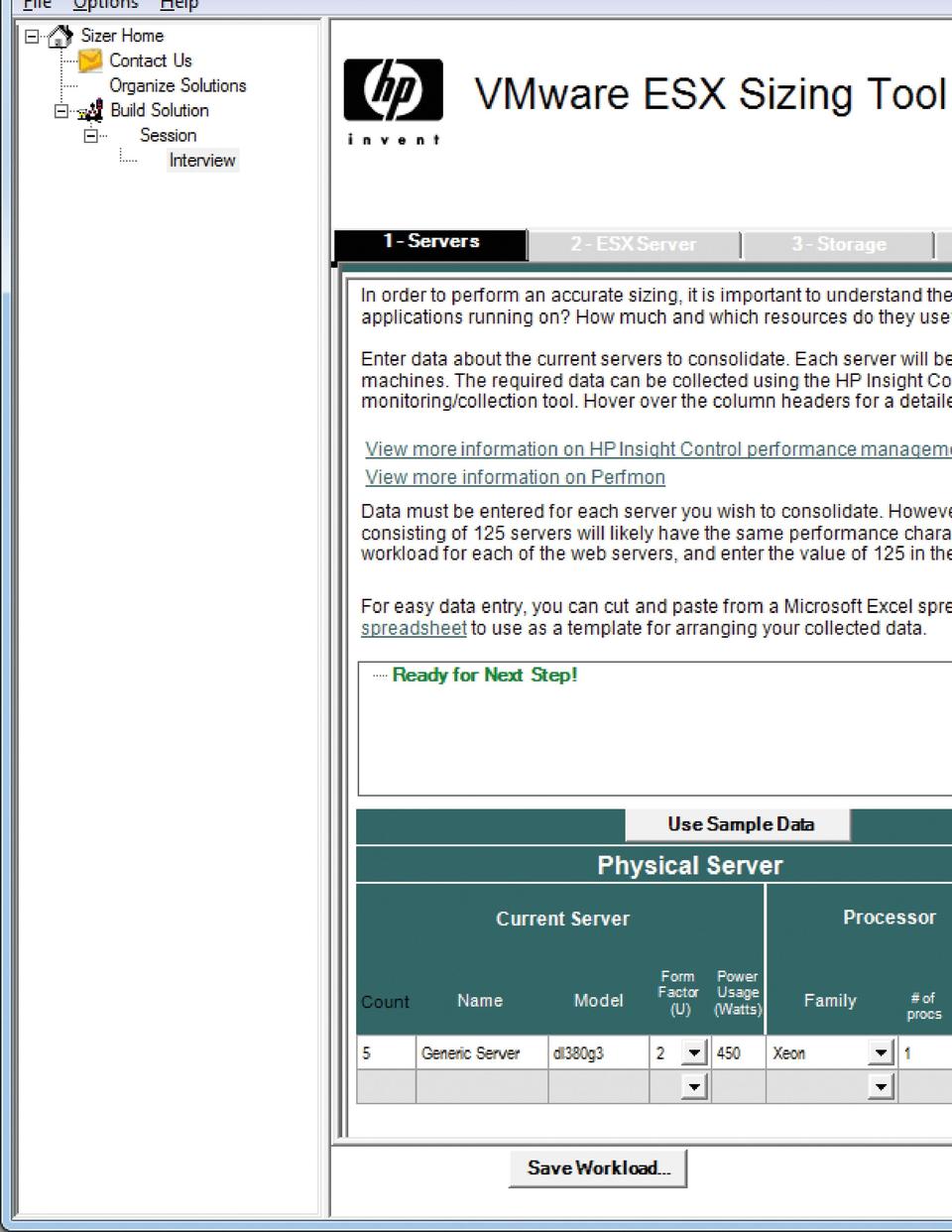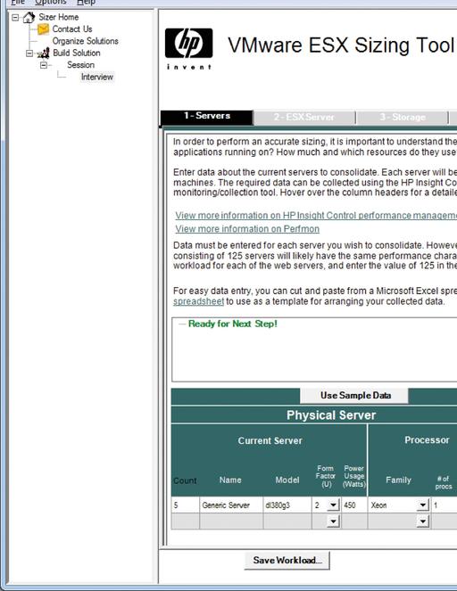 Figure 1. HP's ESX Sizing Tool