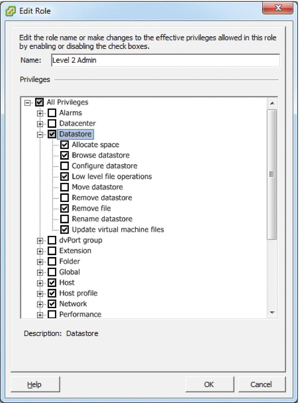 When using any management GUIs that access your hosts, make sure to evaluate and develop a policy regarding access to them before providing access to users. Follow a least-privilege model for permissions, and when possible, use an external authentication source. Also consider using role-based access controls (RBACs) if they are available for your solution (Figure 4). RBACs provide granular control over operation-specific permissions, such as the ability to create new guests or move guests between hosts.