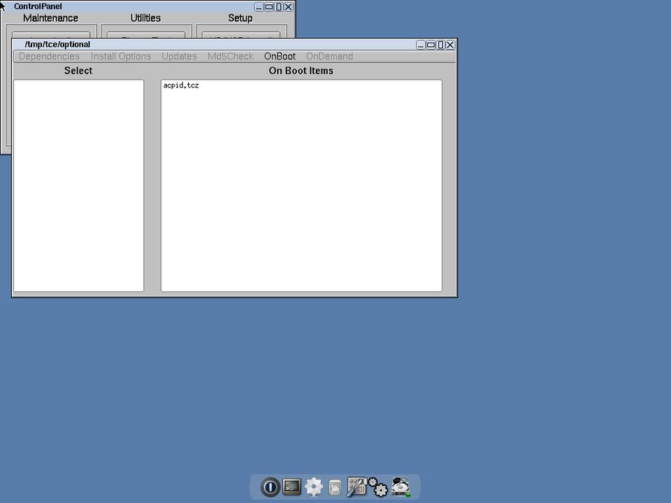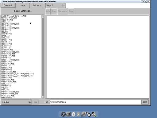 In the first case, let's assume you have the system booting from a USB device that you don't need to remove. Then, you have two options on how to set up the system. The first, mount mode, is to create a directory called tce on the USB device. In this directory, you can dump packages for all the applications you want to have available. These then are mounted as loopback devices. You can use a utility called appsaudit to maintain those packages. You have the choice of having those packages mounted at boot time, or you can have them mounted “on demand” (Figure 4). The other option is called copy mode. In copy mode, Tiny Core actually takes the contents of the package files and copies them all into RAM. This costs a bit more in boot time, but then the entire system is, again, running from RAM, so you get the expected speed-up once everything boots. You actually can control which packages are copied into RAM on an individual basis through the configuration file copy2fs.lst. The system can use this file to decide what is copied and what is mounted.