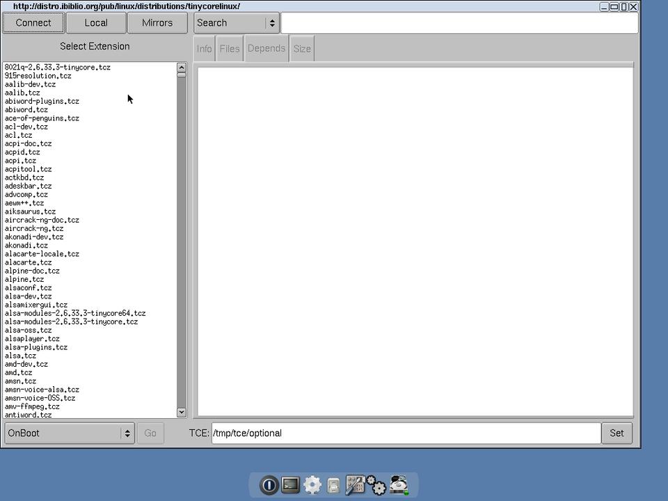 These aren't the only methods available if you want to make a tailored distribution. Because Tiny Core is under the GPL, you can grab the source code and mess around as much as you please. You actually can just remaster the ISO to add in any extra packages you need for your application. In the ISO, there is a gzipped cpio archive named tinycore.gz. This file contains the core filesystem that is mounted in RAM when Tiny Core boots. You can do this work on any Linux box or even from within Tiny Core. If you want to do it in Tiny Core, you need to install a few extra packages before you start: advcomp.tcz and mkisofs-tools.tcz. Once you have all the tools you'll need, you can mount the ISO image: