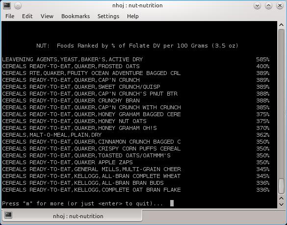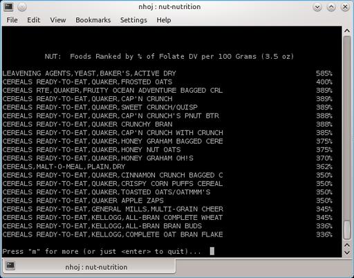 I have written open-source free nutrition software, NUT, which records what you eat and analyzes your meals for nutrient levels in terms of the “Daily Value”, or DV, which is the standard for food labeling in the US. The program uses the free food composition database from the USDA. This free nutritional analysis software was written for UNIX systems (I use Linux), but it can be compiled on just about any system with a C compiler. (To get a free C compiler, Windows people might look at Cygwin or MinGW, and Mac people might look at xcode.) By experimenting with NUT, you can find the optimal level of the various nutrients and how to implement this with foods available to you. NUT can help reconstruct the lost instruction manual to your care and feeding, because, when the authorities and crackpots disagree on the proper human diet, you can design an experiment using the food composition tables to discover the truth!