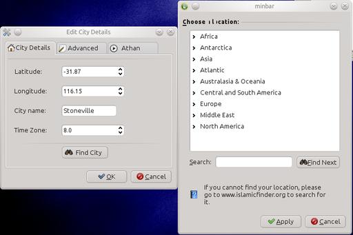 Once installed, Minbar should be in your system menu (Utilities→Minbar Prayer Times on my Kubuntu machine), or you can run it with the following command: