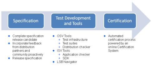 The LSB is a core standard for the Linux operating system that encourages interoperability between applications and the platform. Figure 1 shows the components and processes of the LSB.