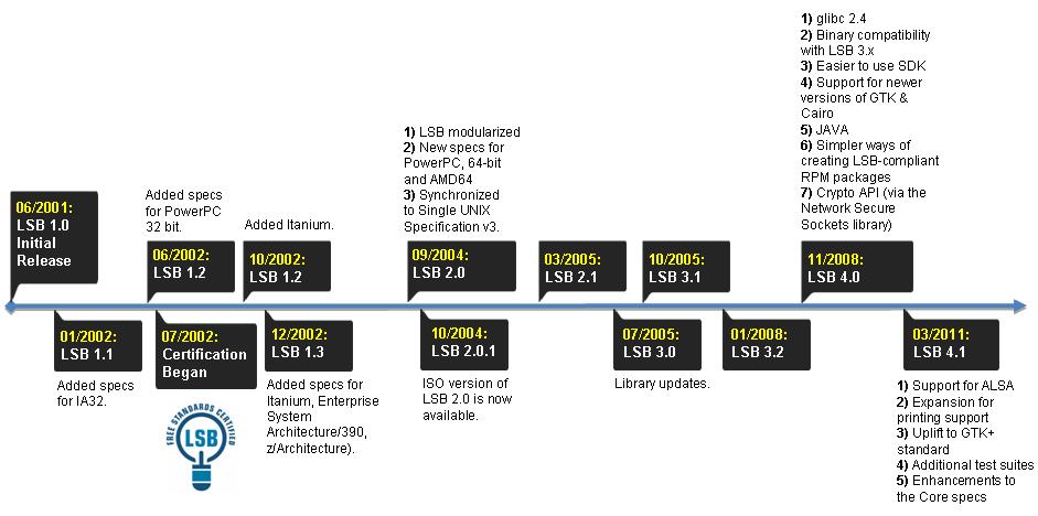 Figure 4 shows the history of LSB releases. LSB 4.0, introduced a number of major improvements: