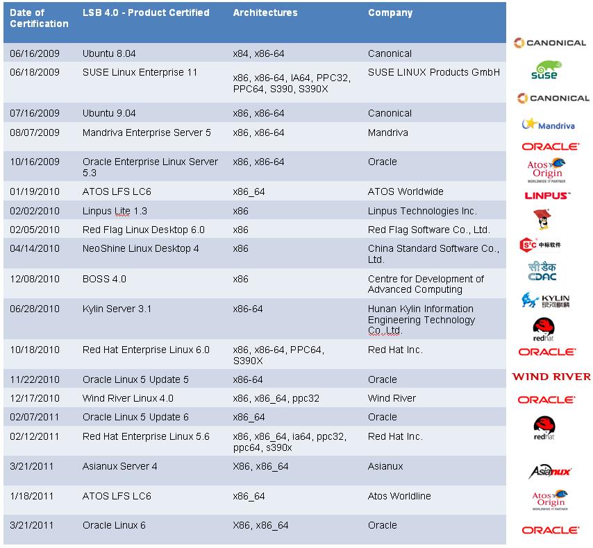 Figure 5 shows the list of currently certified LSB 4.0 distributions.